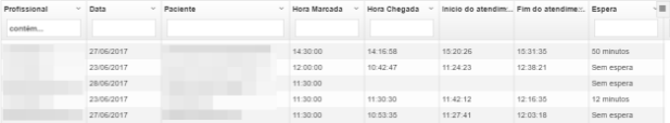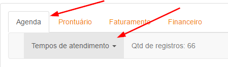 Relatórios >> aba AGENDA >> opção TEMPO DE ATENDIMENTO