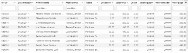 Relatório de comissão por Profissional