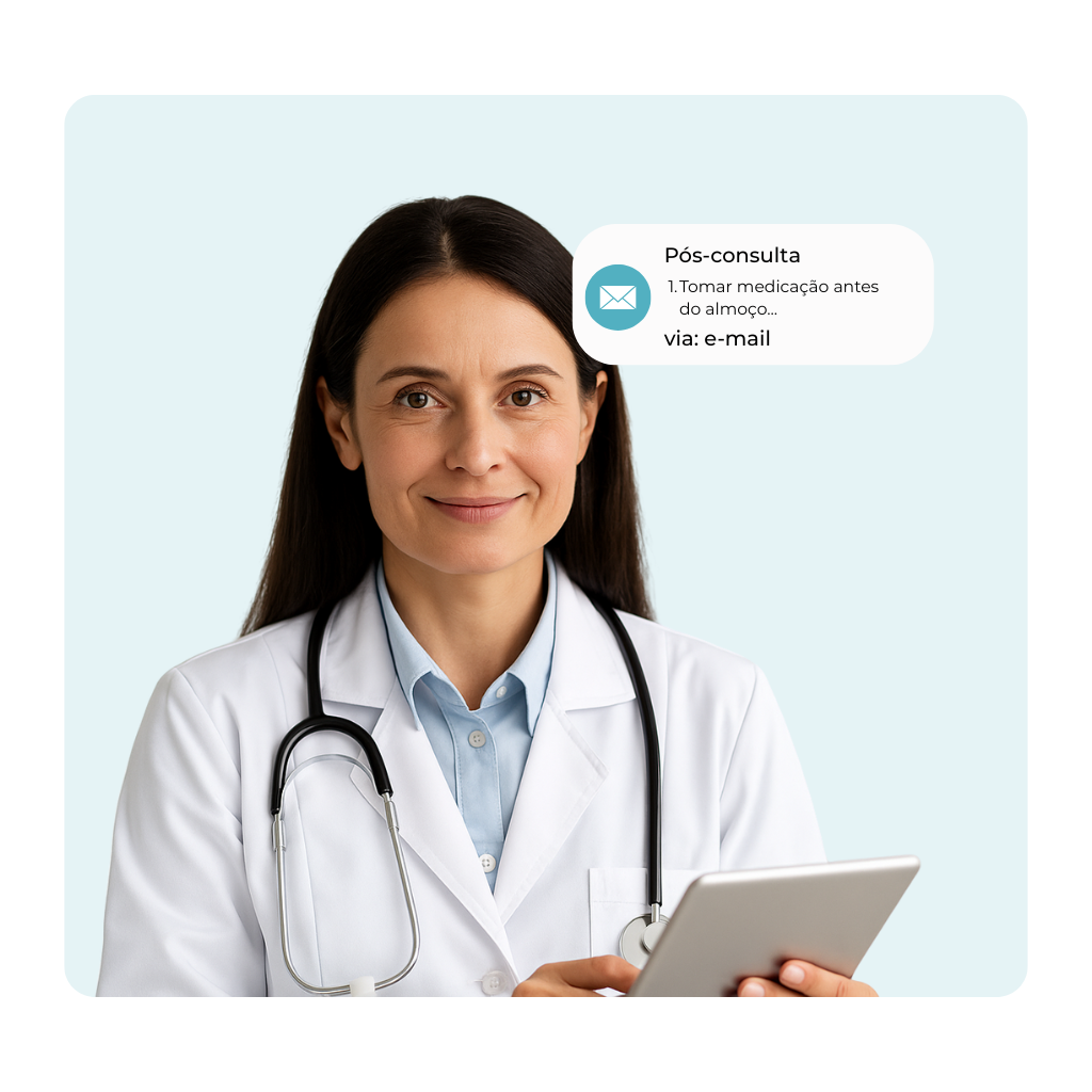 Envie orientações personalizadas, reforços de tratamento e pesquisas de satisfação após o atendimento. Mantenha o relacionamento ativo e mostre cuidado com processos que funcionam sem sobrecarregar sua equipe.